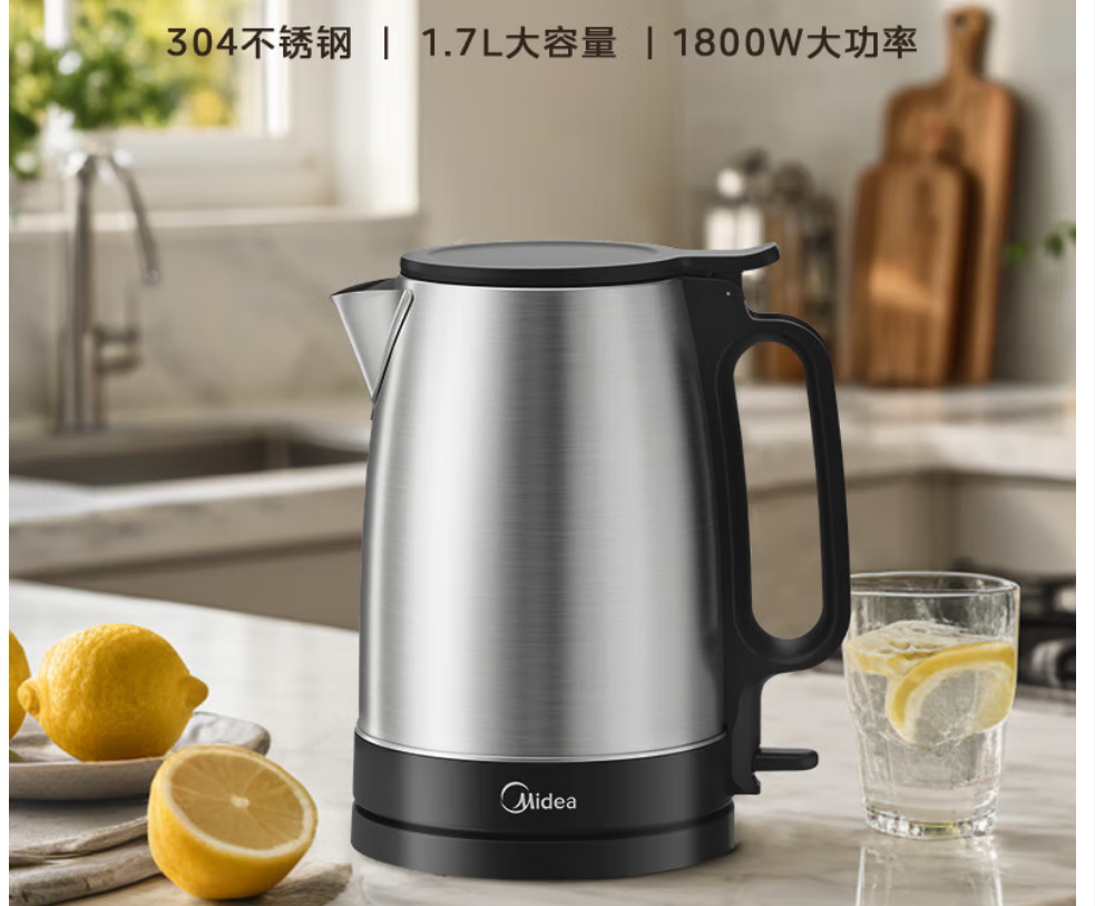 美的/Midea MD1700 壶 烧水壶电水壶热水壶母婴级不锈钢 0涂层2升大容量开水壶 双层防烫 1.7L 双钢防烫|1800W大功率