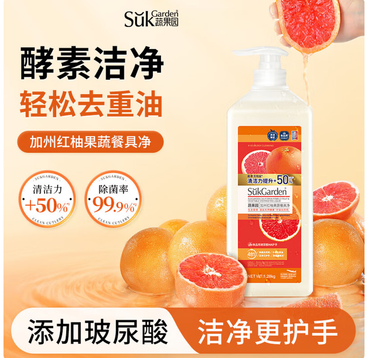 蔬果园/SUKGARDEN GY1280 多用途清洁剂 食品用洗洁精加州红柚1.28kg 添加芦荟精华轻松祛油可洗果蔬