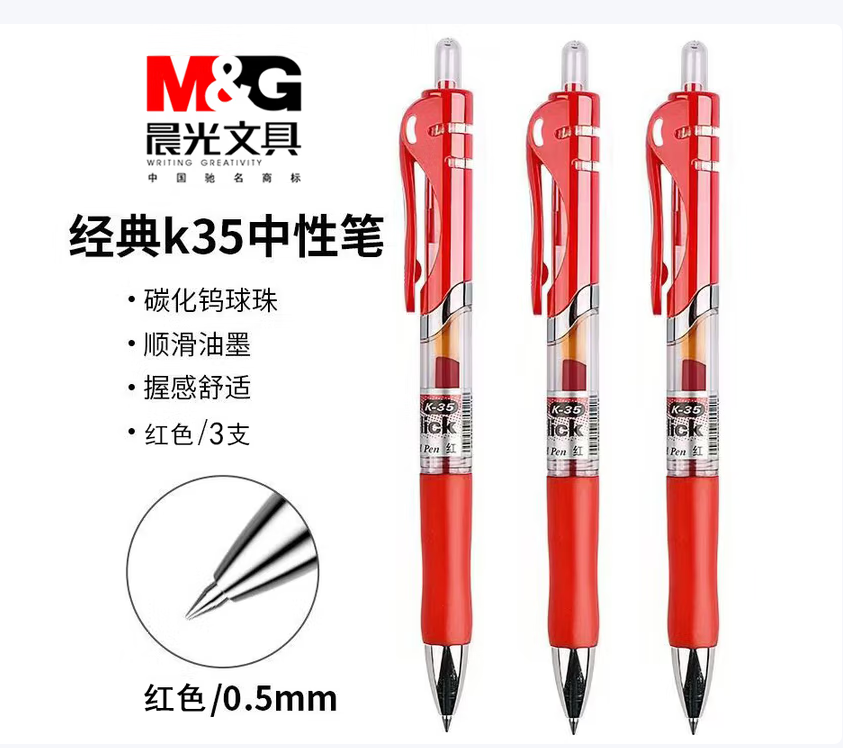 晨光/M&G K35M 书写用笔类用具 文具K35/0.5mm红色中性笔 按动中性笔 经典子弹头签字笔 学生/办公用1支