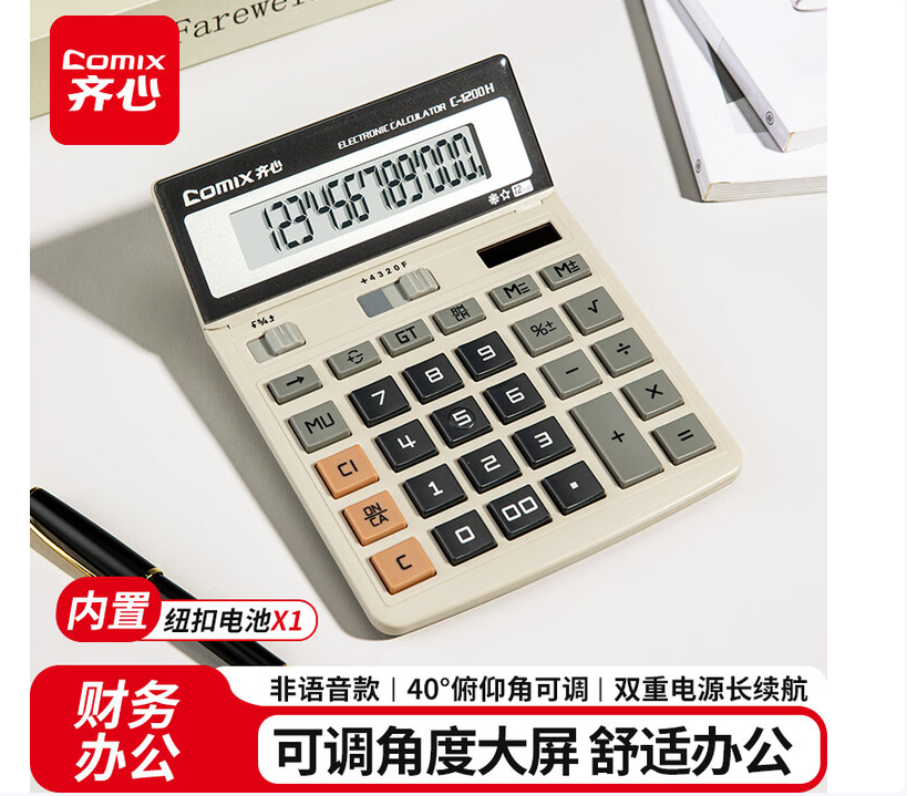 齐心/COMIX C-1200H 电子计算器 双电源办公大号计算器 宽屏财务计算机办公文具用品