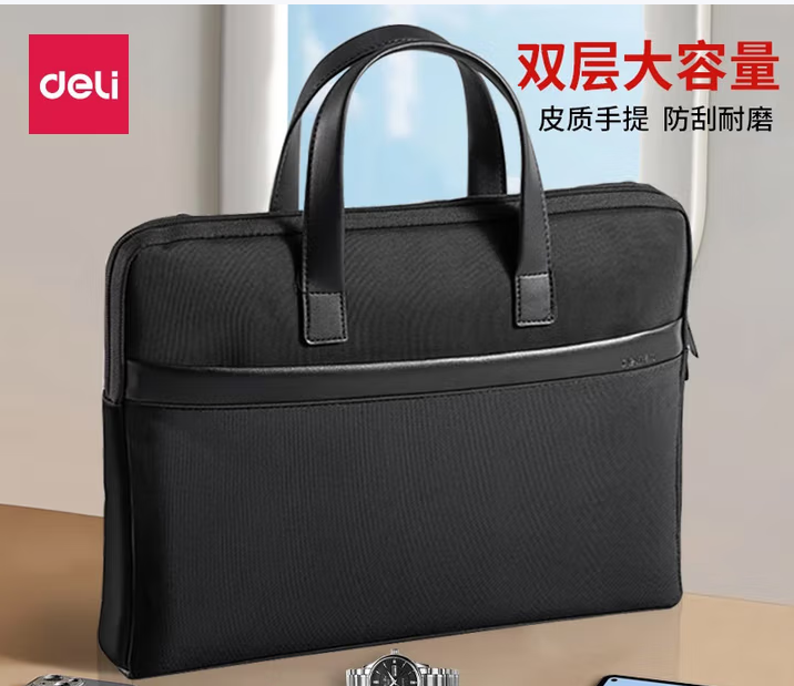 得力/deli DL63751 收纳包 商务公文包男款便携式手提包文件包出差办公会议包加厚大容量文件袋帆布包电脑包