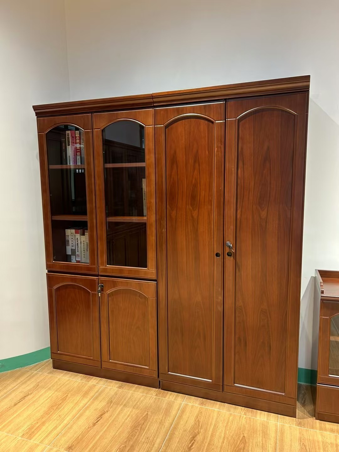 安格佳 CSS9422 文件柜 文件资料柜档案柜 油漆办公柜办公室 四门书柜带玻璃门书架落地 客厅 实木