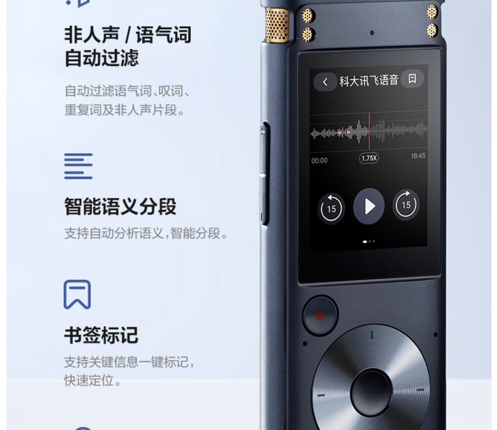 科大讯飞/iFLYTEK SR302T 录音笔 AI录音笔SR302星火版 免费录音转文字 智能降噪录音器 随身便携专业录音设备录音机 同声传译