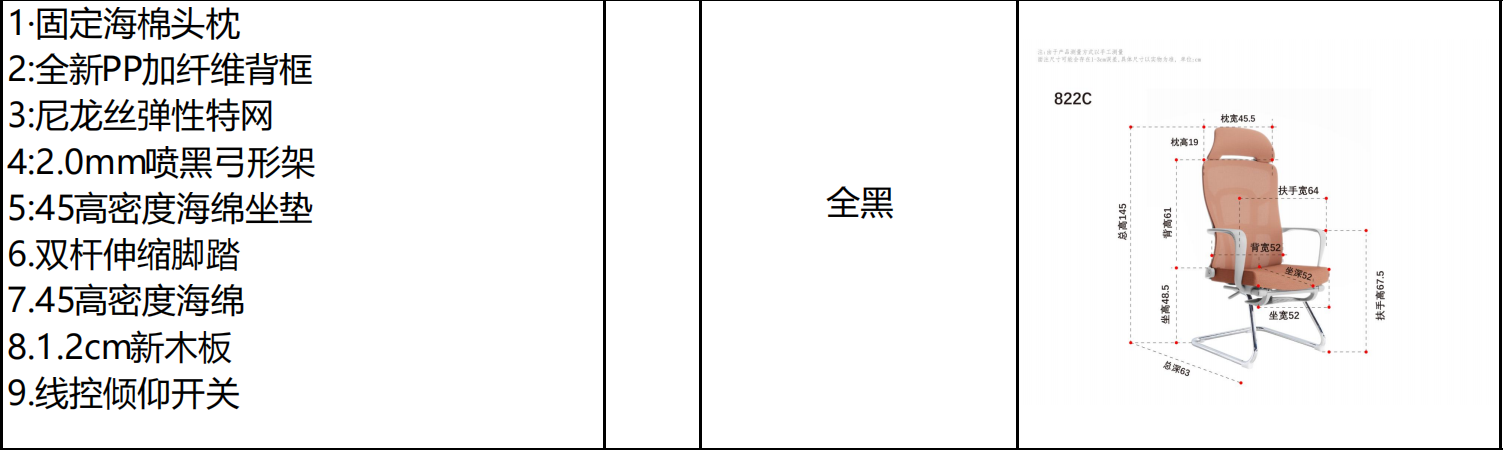 国景 XQN822C 办公椅 办公椅子 尺寸 72*40*63 网椅 会议椅 学习椅 弓形椅 主管椅 黑框 全黑 带脚踏