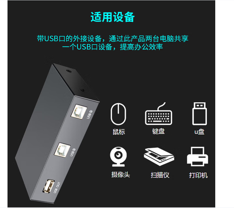 晶华 Q3109 网络连接设备 USB切换器2进1出共享器方口台式机笔记本电脑打印线连接打印机共享2进1出切换使用