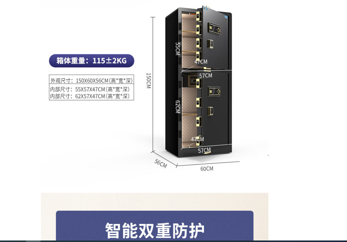 虎牌 HPBR150 保密柜 保险柜家用办公大型型电子密码保险箱全钢防盗可入墙保密保管柜 博瑞系列 150cm 钢琴黑 双门密码开启