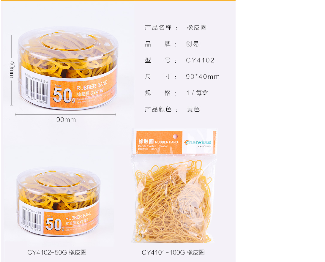 创易/chanyi CY4102 打包绳 橡皮筋牛皮筋办公文具财务用品橡胶乳胶圈袋装黄色高弹力 袋装(约360根)