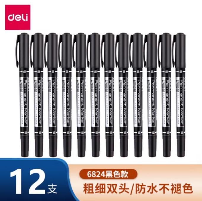 得力/deli DL6824 书写用笔类用具 黑色双头多用油性记号笔签字笔 双头勾线笔美术勾线笔会议笔马克笔 学生儿童勾线笔1支