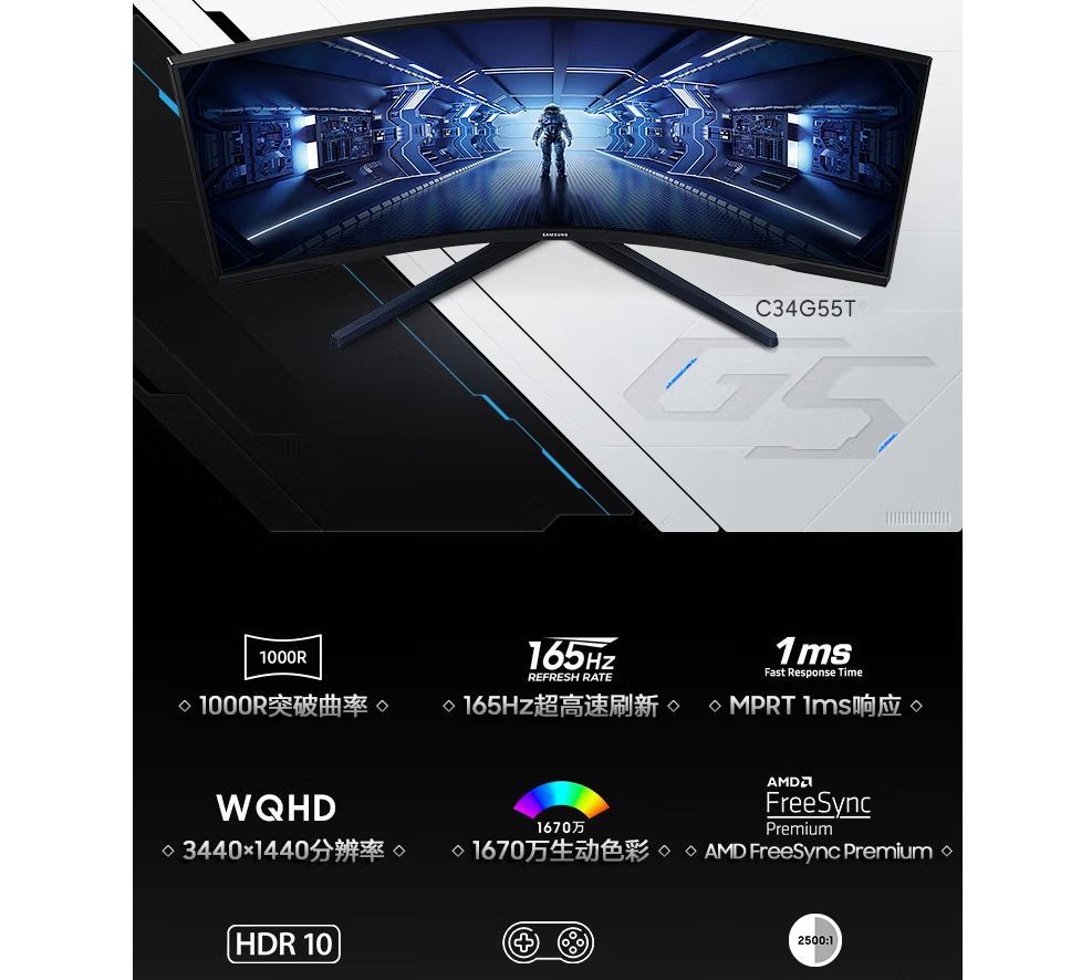 三星/SAMSUNG C34G55TWWC 液晶显示器 34/16:9/ADS/1024/104/3年