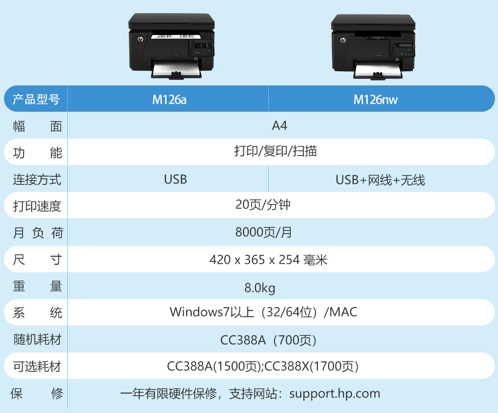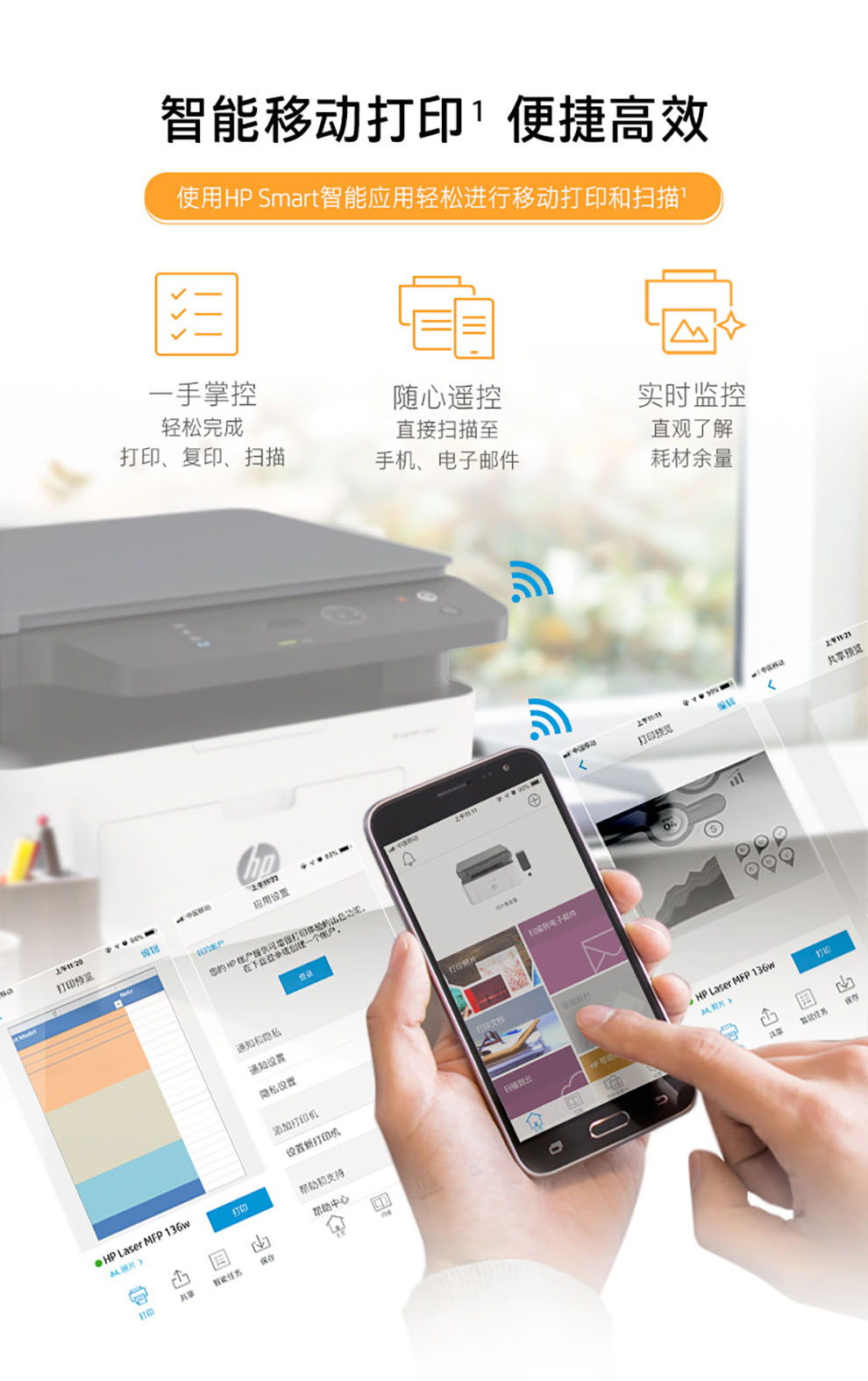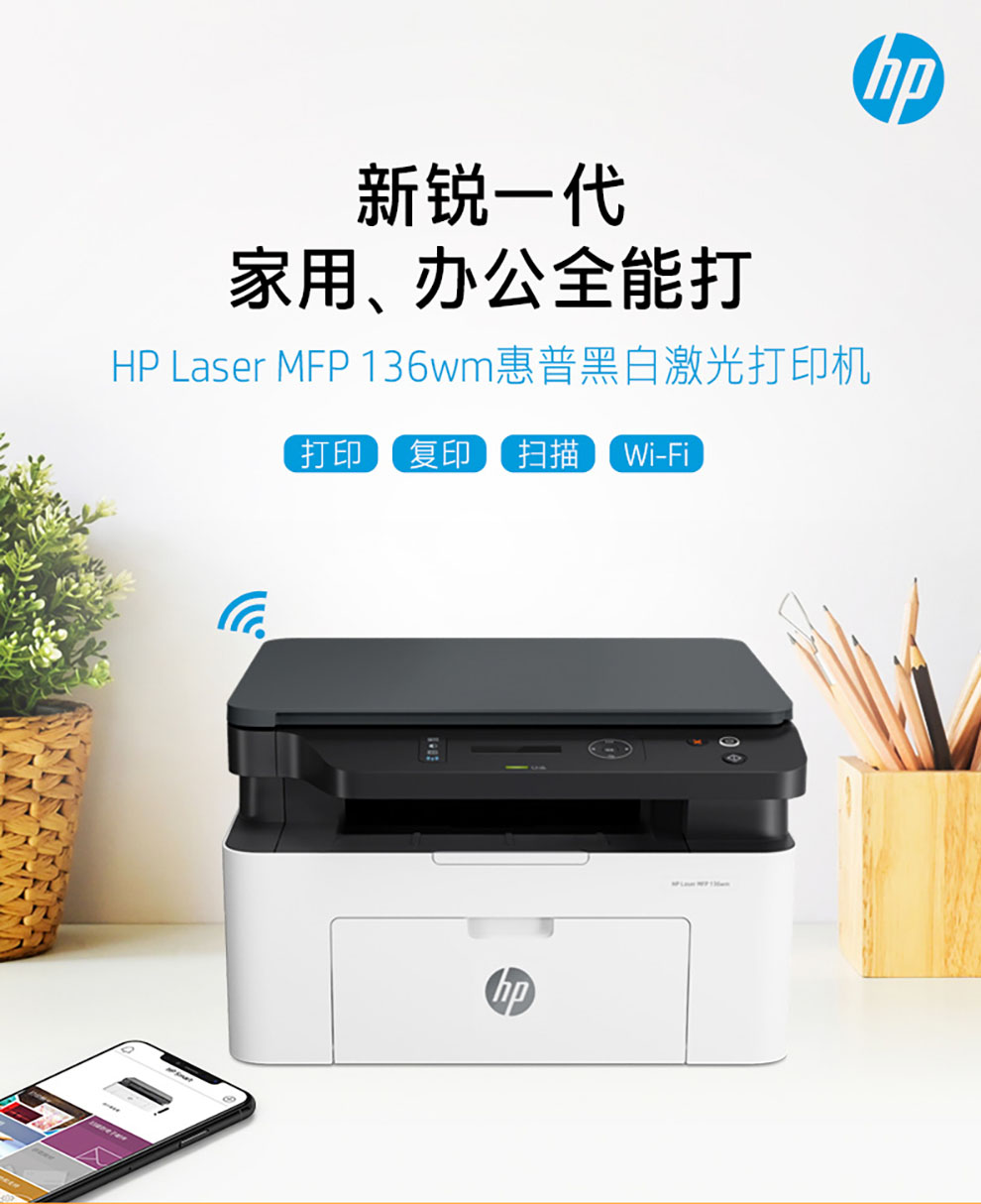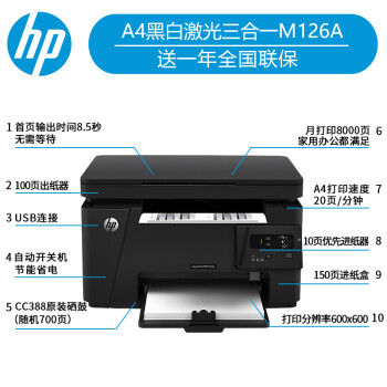 惠普(HP)打印机M126a 136wm 136nw A4黑白激光复印扫描多功能一体机家用办公作业 M126a三合一【打印复印扫描+仅USB连接】