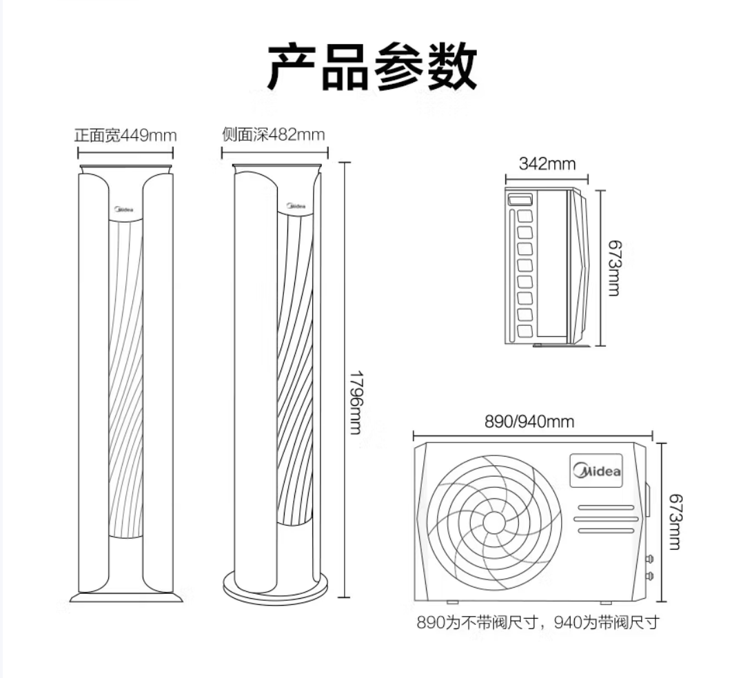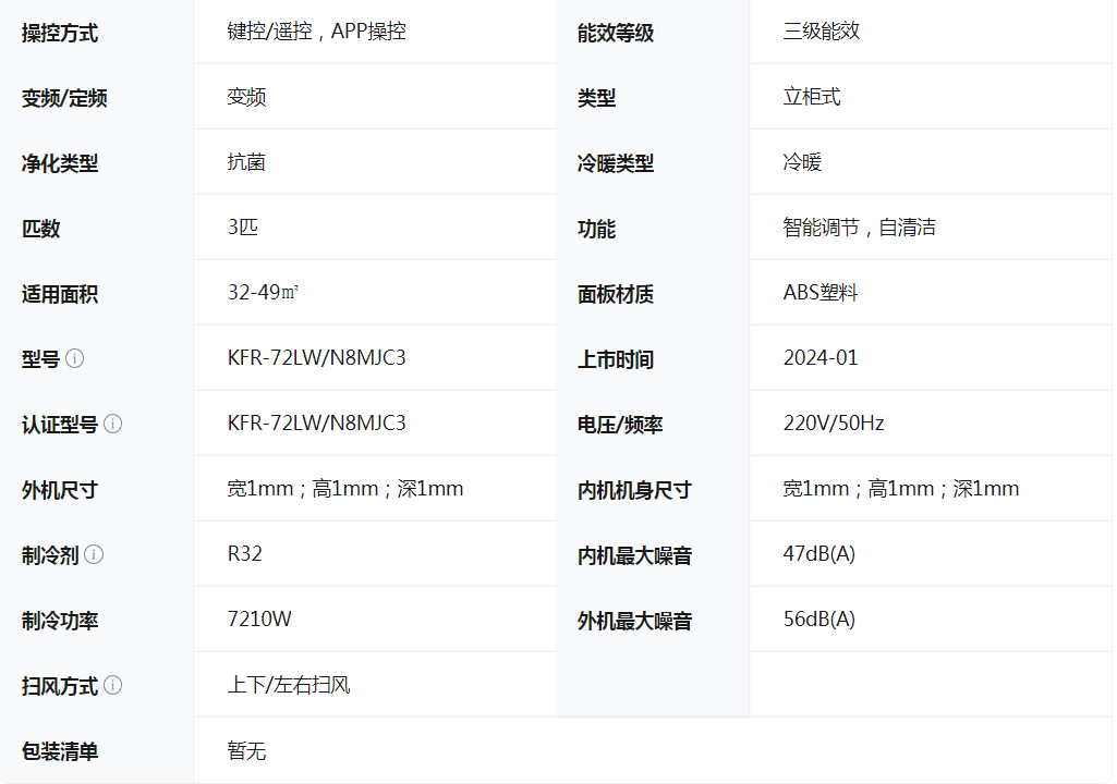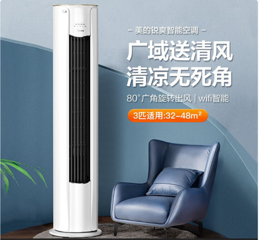 美的/Midea KFR-72LW/N8MJC3 柜式空调 新能效智能变频冷暖 除湿自清洁 圆柱空调 立柜式客厅立式大风口 风酷 智慧家电以旧换新 大3匹 三级能效