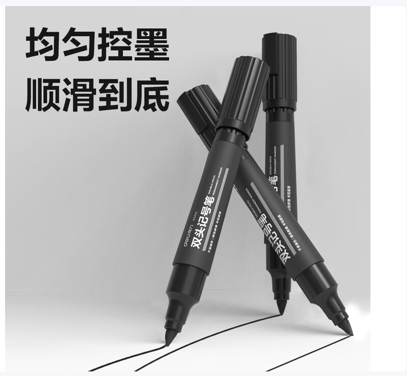 得力/deli S555 书写用笔类用具 大双头粗头物流快递记号笔1.5mm/5.7mm 办公签字学生文具教学会议笔马克笔 1支 黑色 S555