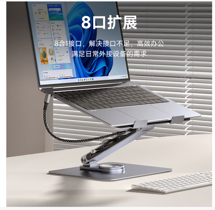 海备思/Hagibis HALJ1001 电脑支架 笔记本支架拓展电脑hub扩展增高架多接口HDMI托架散热悬空架子可升降折叠旋转收纳适用MacBook配件