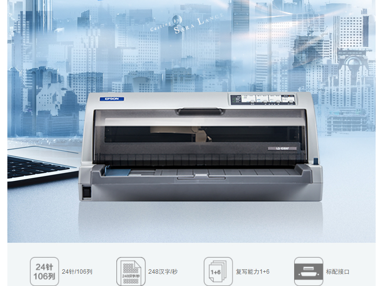 爱普生/EPSON 106KF 票据打印机 平推式/106列(A4纸横)/24针