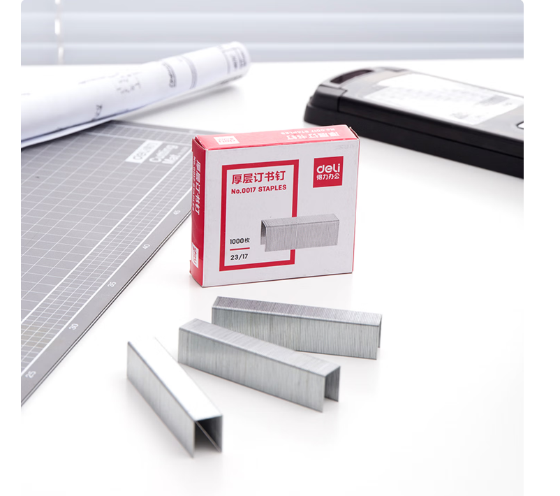 得力/deli DL0017 装订及打孔类 23/17厚层订书钉 易穿透订书针 1000枚/盒 单盒装 可订120页 办公用品 0017