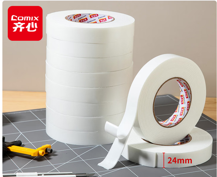 齐心/COMIX QX2452 胶带 高粘EVA泡沫绵双面胶强力高粘度 24mm*5y(4.57米/卷)加厚泡沫双面胶强力胶 白色1卷装