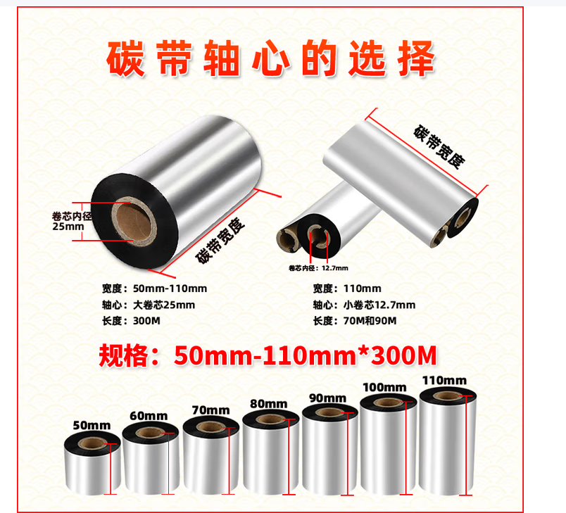中麒 ZQ1103 色带、碳带 110x300碳带卷 增强蜡基碳带