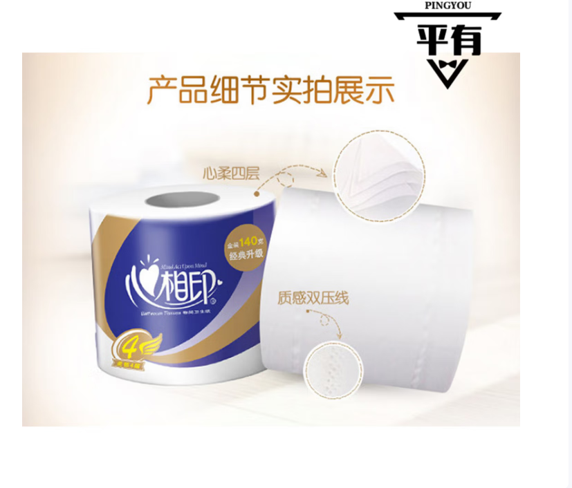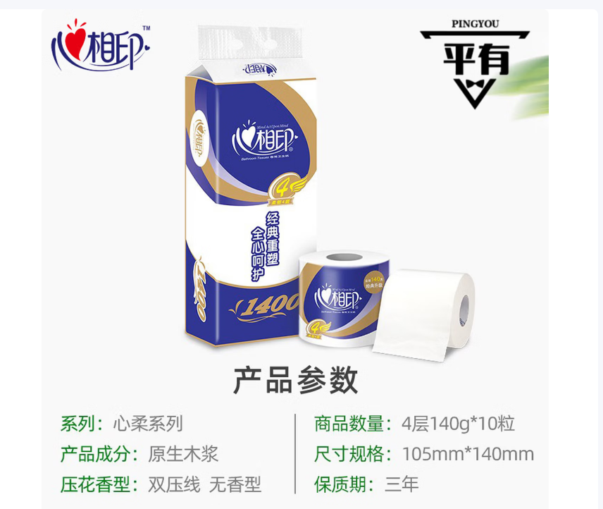心相印/XINXIANGYIN XXYBT910 卷类卫生纸 卷纸特柔4层 心心相印卫生纸有芯卷纸厕纸10卷/1提