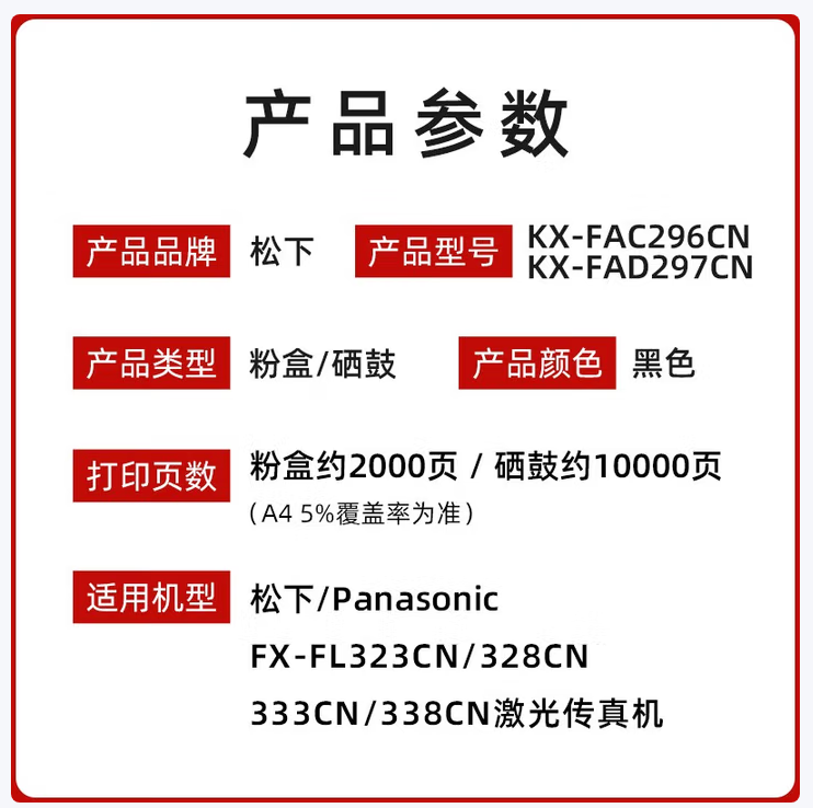 松下/Panasonic KX-FL328CN 粉盒 原装松下KX-FAC296CN墨盒 KX-FL323 333 328 338CN传真机粉盒墨盒 松下KX-FAC296CN粉盒