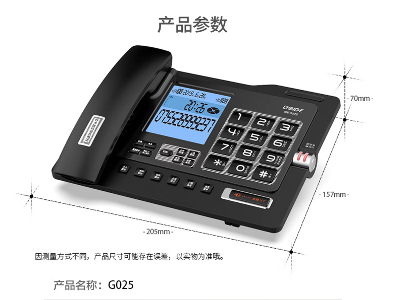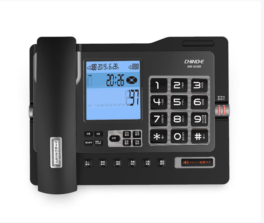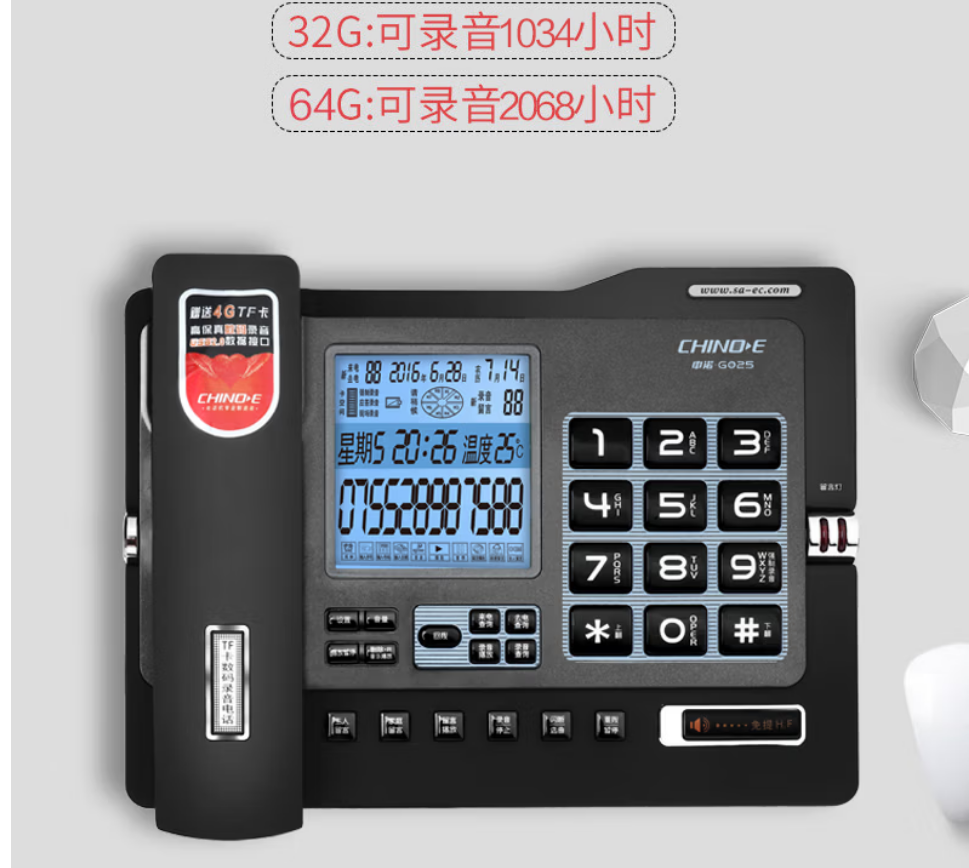中诺/CHINO-E ZNG025 普通电话机 黑色16G版录音电话机座机可录音1500小时支持扩充至32G卡智能自动录音办公家用固定电话留言