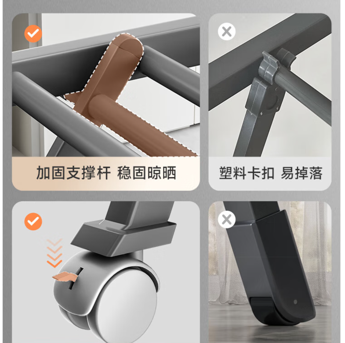 匠华 JH3808 衣架 晾衣架落地 可折叠衣架室内阳台晾衣杆晒衣架简易不锈钢 加厚
