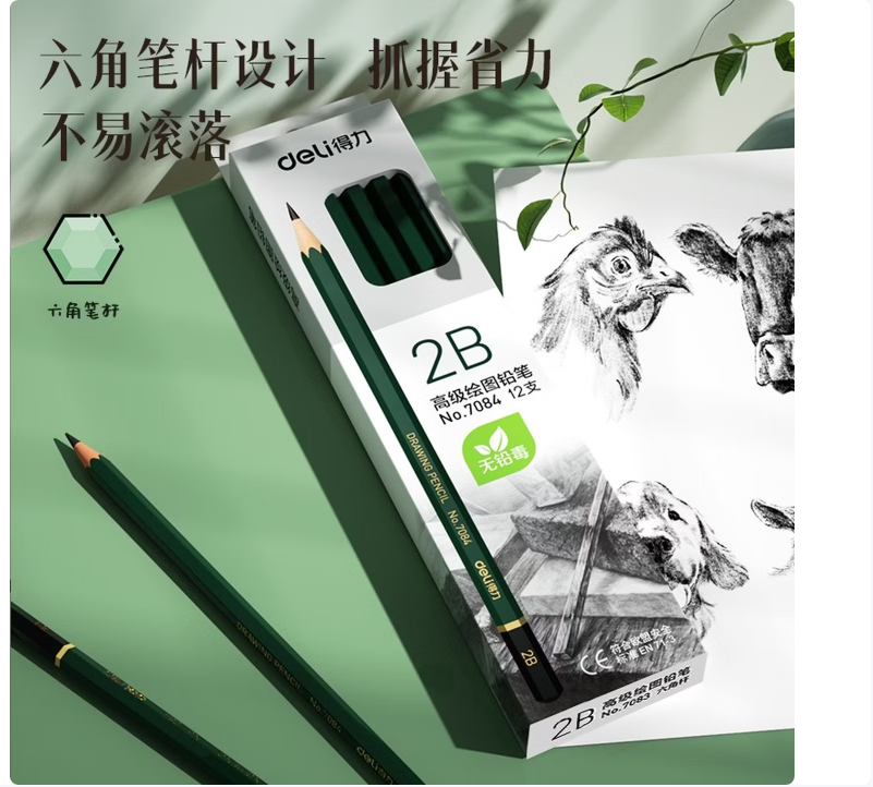 得力/deli DL17084 书写用笔类用具 2B素描绘图铅笔六角学生铅笔考试专用填涂答题卡铅笔12支/盒