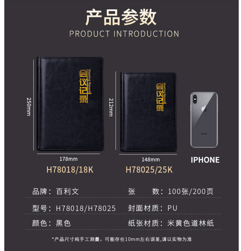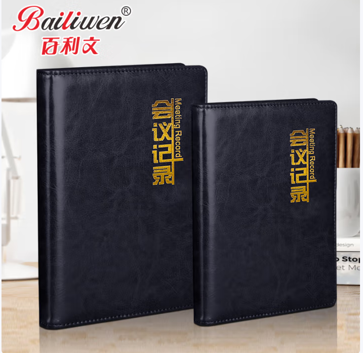 百利文/bailiwen H78018 薄本册 黑色会议记录本18K皮面笔记本子日记本书写本子工作记事本商务办公会议本