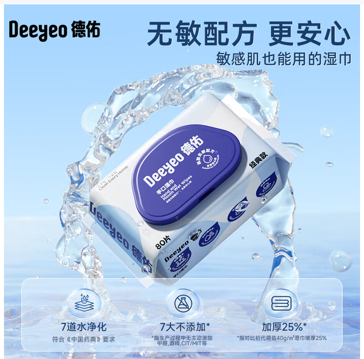 德佑 DY180 湿巾/手帕纸 湿巾大包80抽*1包 EDI纯水洁肤湿纸巾 婴儿手口湿巾纸箱装