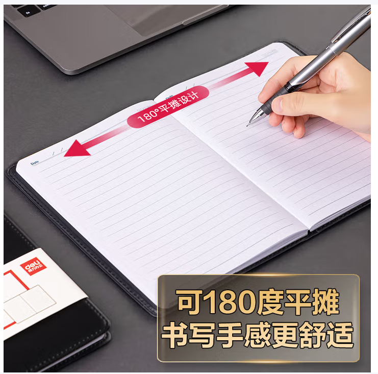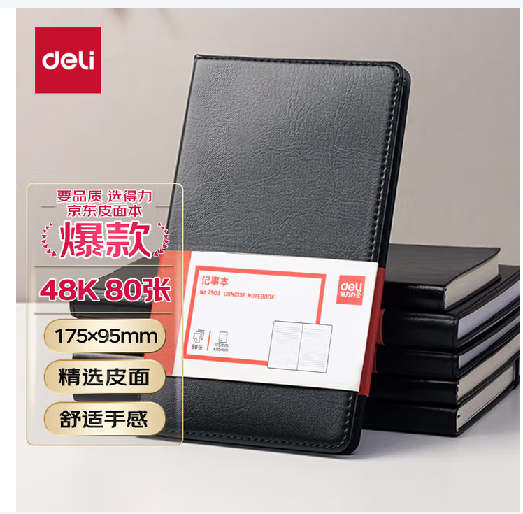 得力/deli DL7903 薄本册 加厚笔记本子文具 商务经典软皮本子会议记录复古本皮面本 48K 80张