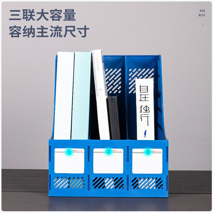 得力/deli 9847XL 文件筐 文件框三联文件架收纳文件栏文件筐办公用品创意桌面文件框资料架 黑色 9847 蓝色三栏文件夹