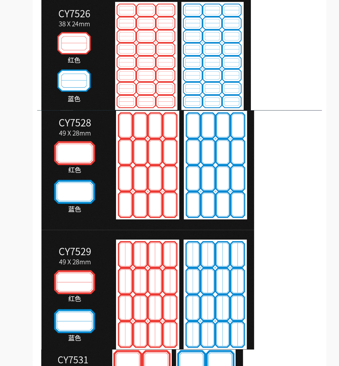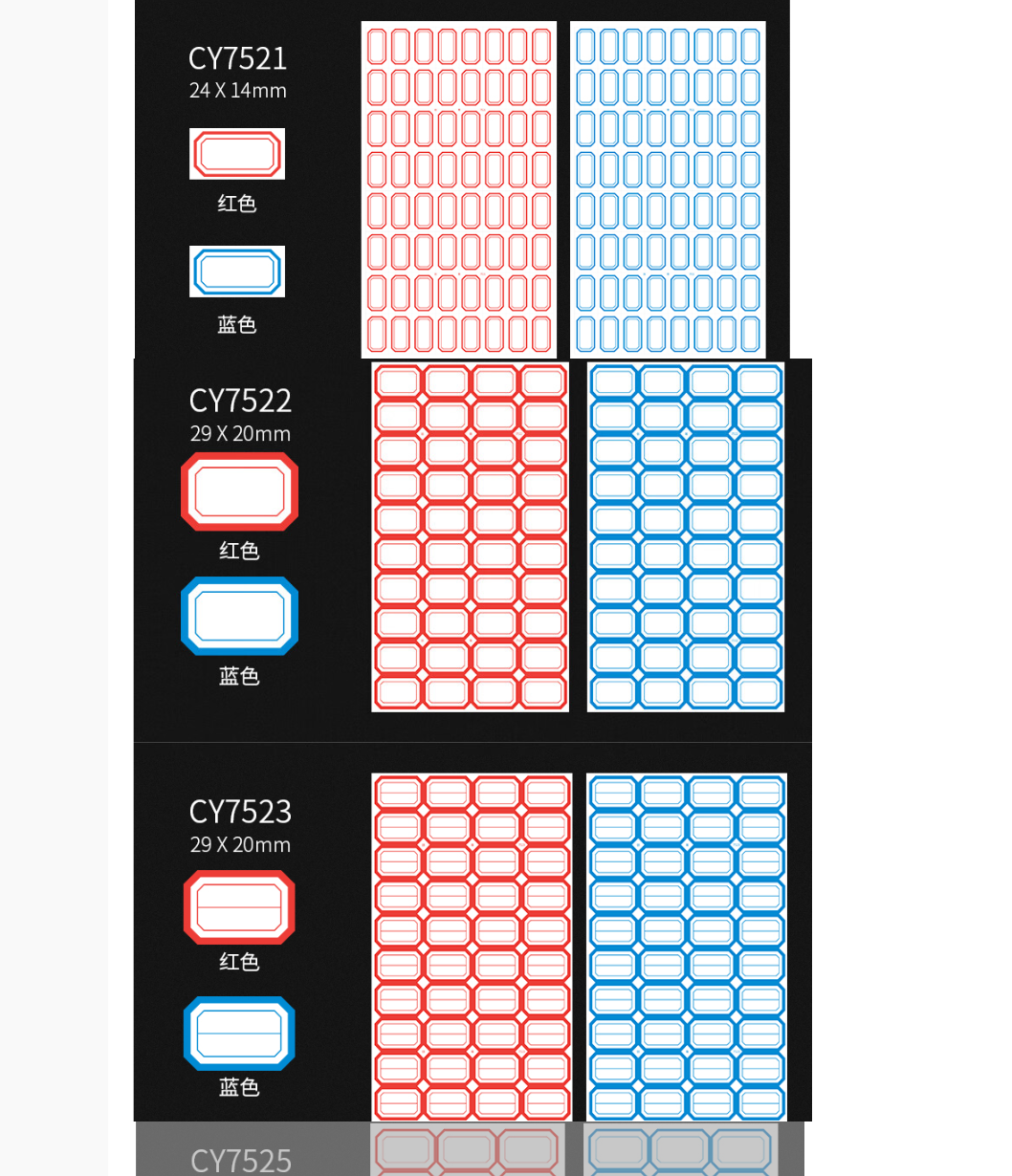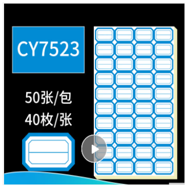 创易/chanyi 7523 标签打印纸/条码纸 自粘性不干胶标签贴纸口取纸手帐贴纸姓名帖手写价格标签标记贴文具办公用品 7523蓝色(40枚*50张)