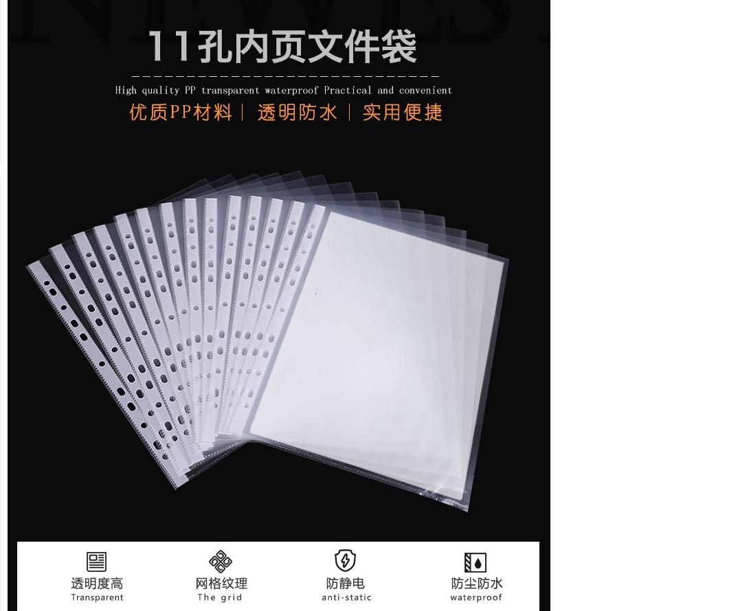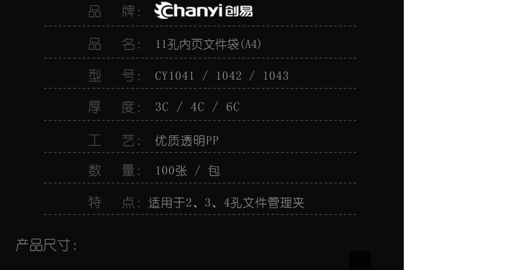 创易/chanyi CY1041 文件袋 100个11孔a4打孔文件袋透明加厚资料保护膜套多层办公用品收纳夹活页插页资料 加厚款-高透明/100张