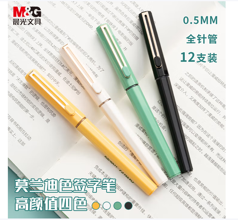 晨光/M&G ARPB1801 书写用笔类用具 文具0.5mm黑色中性笔 直液式全针管签字笔 初色系列颜值派水笔 1支/ARPB1801